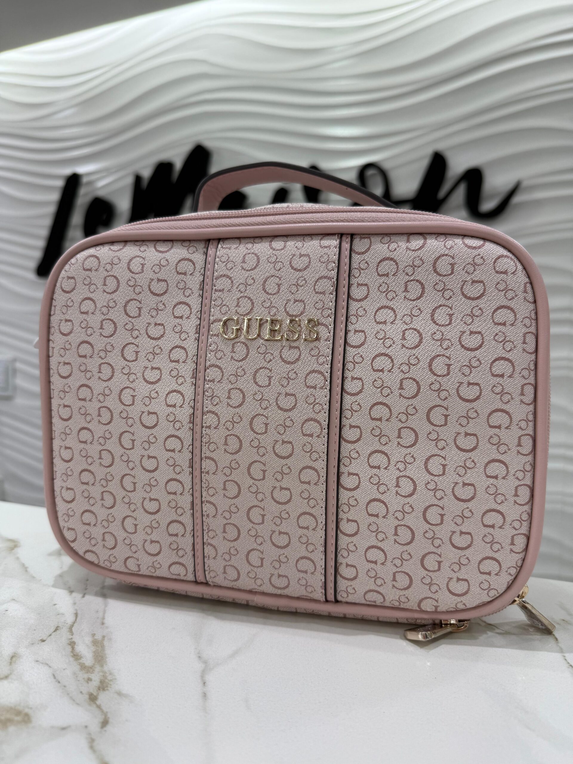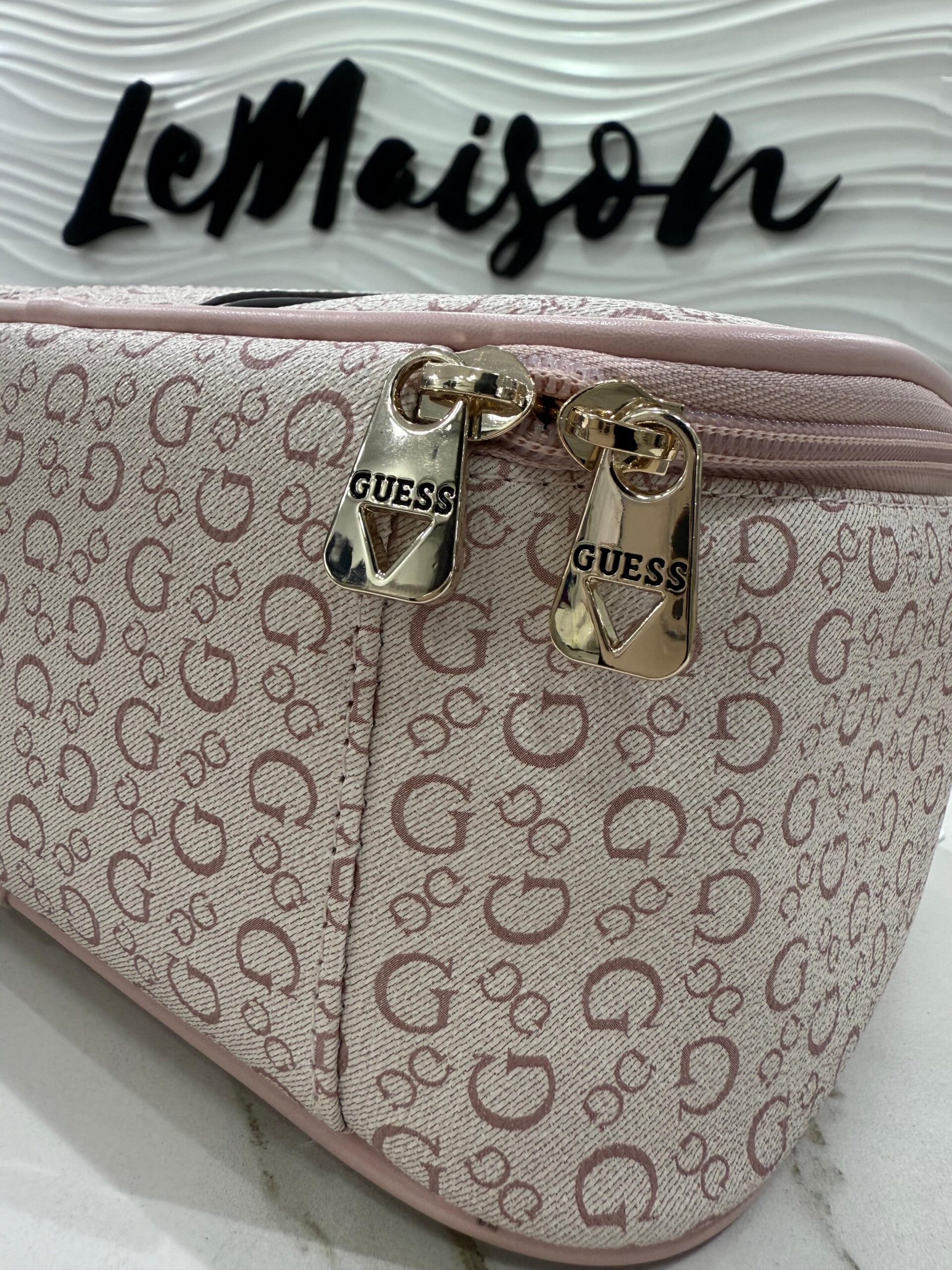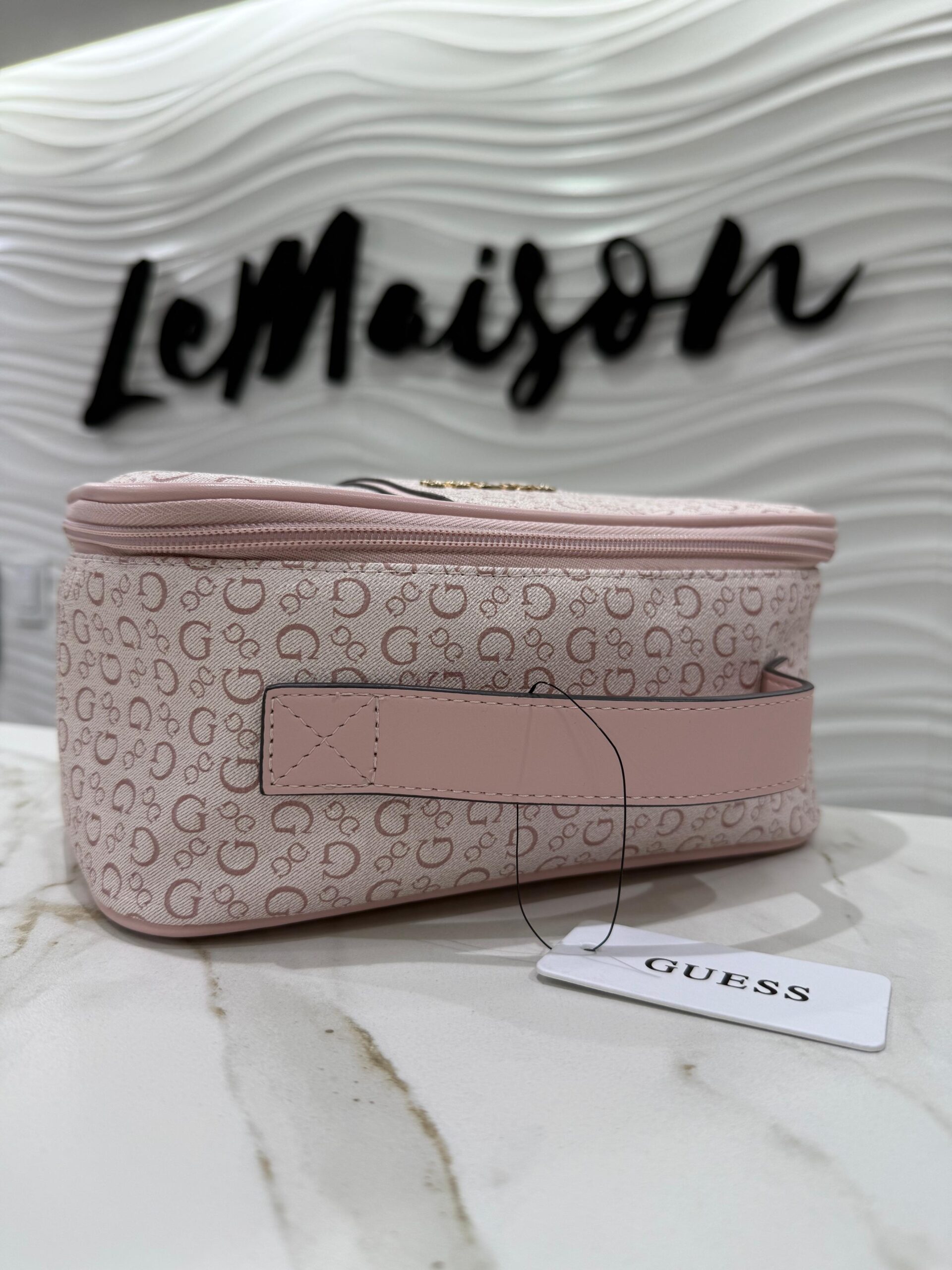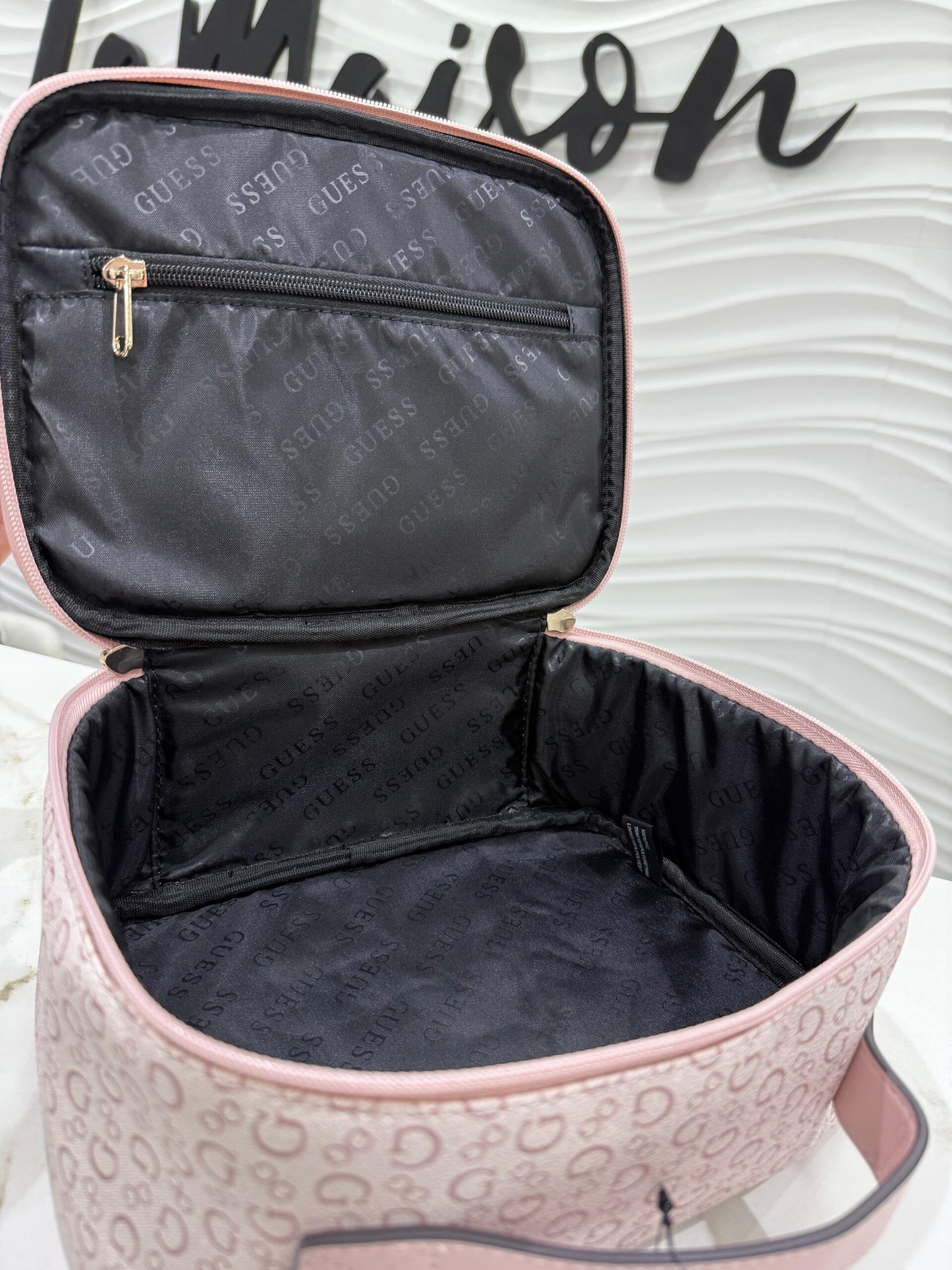 Beauty bag Guess con cierre entero y manijas de logos rosa