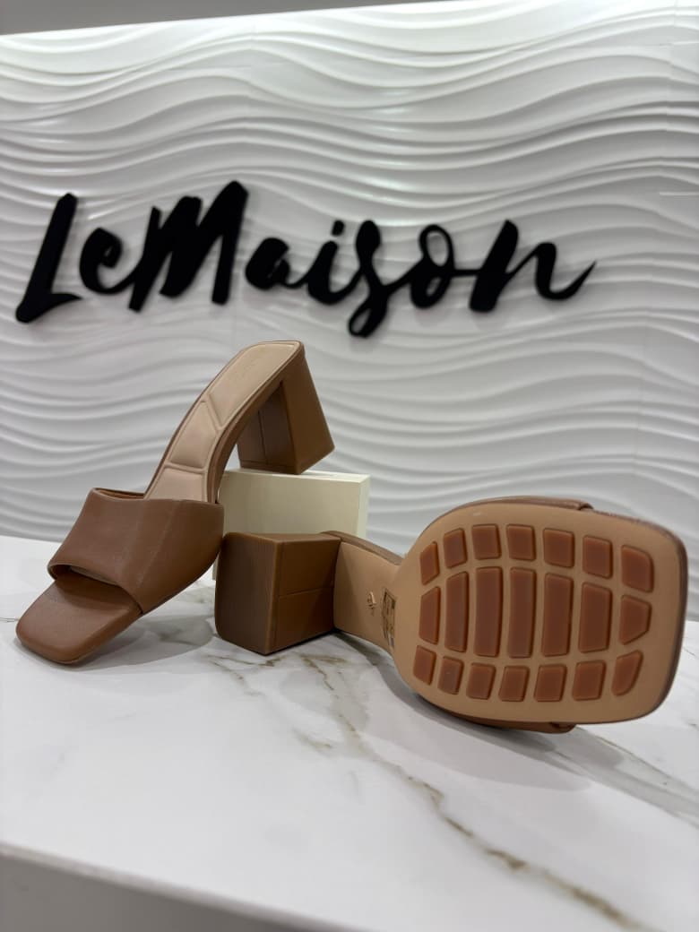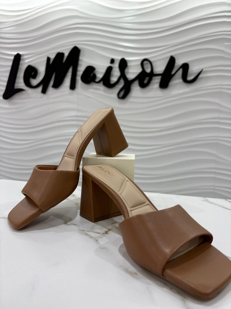 Sandalias Aldo chocolate talón descubierto y taco cuadrado